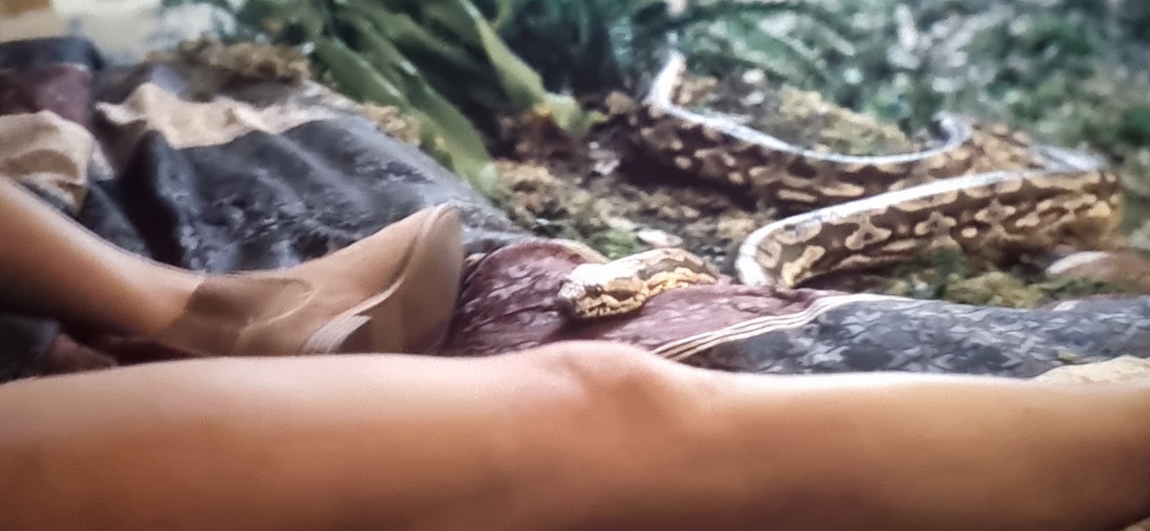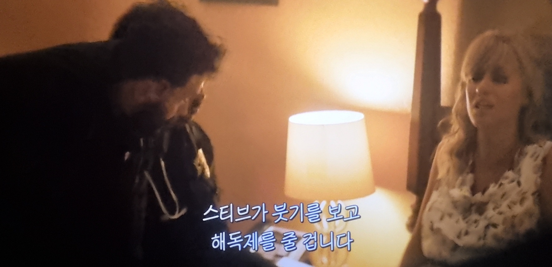 이 여자도 윗장면에서 나왔지만 호텔방에서 밀림지대에나 있는 독사에게 물려요. 이 여자도 싱크로닉을 먹고 과거로 가서 밀림지대에 다녀온거에요.